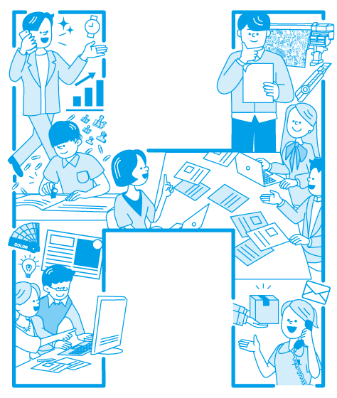 人は嬉しい時、楽しい時、心躍る時、という感情が生まれます。 働く中でこのがとても大切だと考えます。 ホーコーズはデジタルプリントを通じて人と企業と社会を繋ぎ、新たな価値を生み出します。 そしてみんなができるような、コミュニティを創造します。